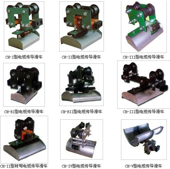 HC系列工字鋼滑車分為中載荷型、重載荷型、和輕載荷型,工字鋼滑車因此滑車走輪為Ф80、Ф63、Ф50的三種,承載能力≤50∽150kg,每類按托板層數(shù)分為單層、雙層、三層,每類中有三種形式,工字鋼滑車首端為電纜牽引車,終端為固定掛線架,中間為電纜滑車。