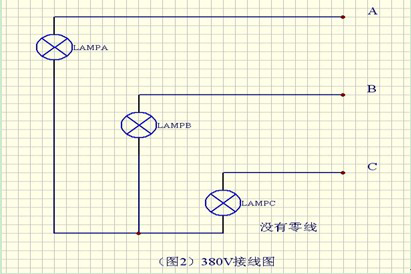 2、滑觸線電源指示燈在無(wú)零線的情況下,各指示燈的一端分別接電源A B C,另一端接在一起。這時(shí)請(qǐng)選用380V天車滑觸線電源指示燈。(如圖2)交流3000V同理。