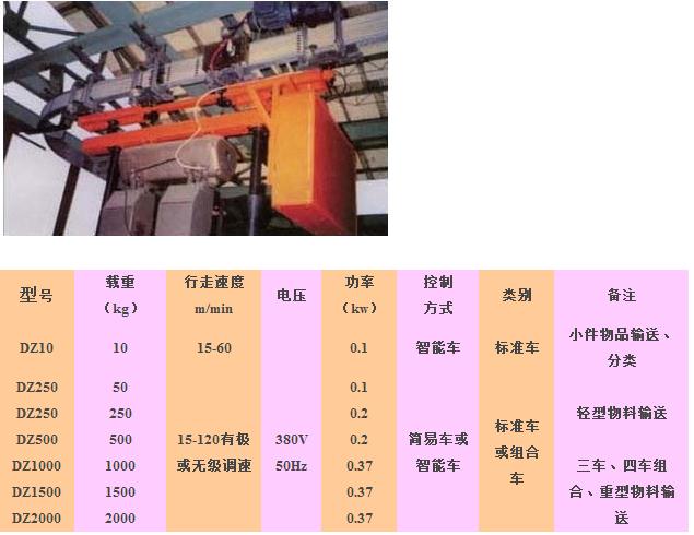 電動(dòng)自行小車輸送系統(tǒng)是在水平、垂直方向都能自由行走的單軌系統(tǒng)。由軌道、道岔、升降裝置、電控系統(tǒng)五大部分組成。廣泛地應(yīng)用于機(jī)械、化工、汽車生產(chǎn)流水線、檢測(cè)線和郵電、醫(yī)院、海關(guān)等部門小件物品輸送。